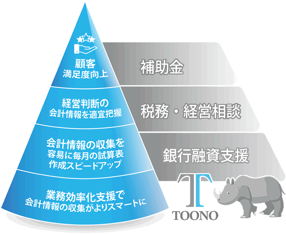 会計情報を基にクライア ント様に向け経営相談補 助金・融資支援のご提案。